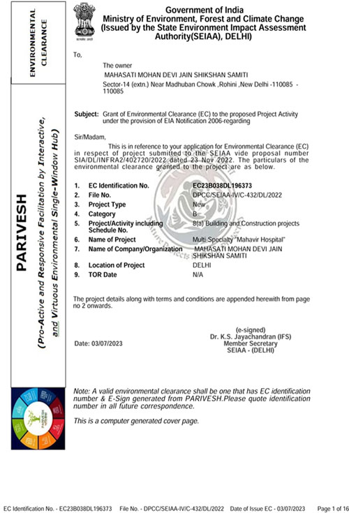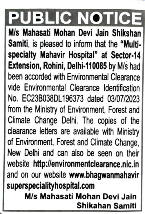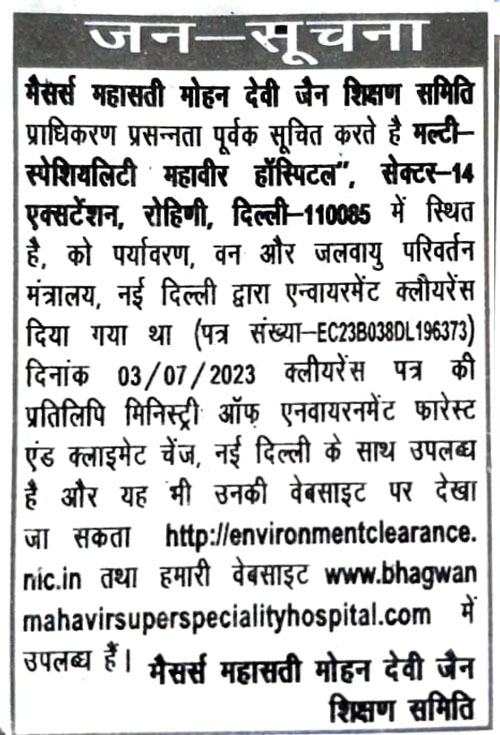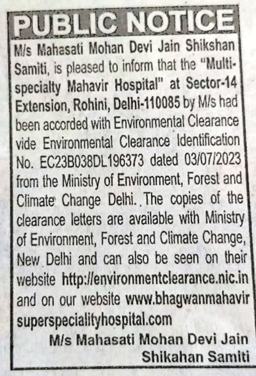 The Advertisement for Accreditation of Environmental Clearance 907 vide ECI No. EC23B038DL196373 dated 03.07.2023 from Ministry of Environment, Forest and Climate Change Delhi: in the Newspapers at: 16.10.2025